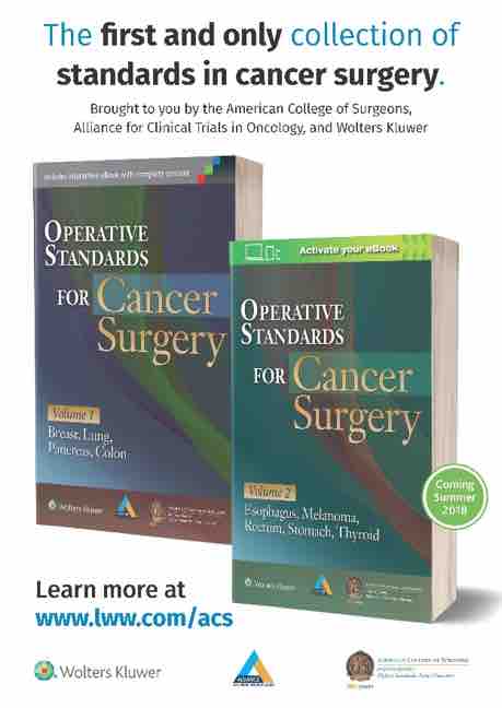 With the participation of more than 120 surgeons in Operative Standards for Cancer Surgery Volume I, it is perhaps the best resource available on the conduct of operations for cancer of the breast, colon, lung, and pancreas. The second volume, led by Matthew H.G. Katz, MD, FACS and Nirmal K. Veeramachaneni, MD, FACS, will be available for purchase later this summer. Volume II involved contributions by more than 140 surgeons and will include operations for melanoma, gastric cancer, esophageal cancer, rectal cancer, and thyroid cancer. Soon, surgeons will be able to purchase individual sections (disease sites) electronically. For more information, contact Amanda Francescatti (ACS CRP Senior Manager) at afrancescatti@facs.org.