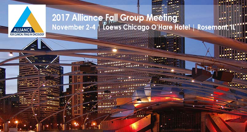 The Alliance for Clinical Trials in Oncology will convene its 2017 Fall Group Meeting in Chicago November 2-4. Scientists, clinical research professionals, patient advocates and others interested in the latest developments in cancer research are expected to attend the four-day meeting at the Loews Chicago O'Hare Hotel. Meeting attendees will select from nearly 100 disease, modality, administrative and special sessions to attend led by distinguished oncology researchers and clinical trial specialists from across the country. This meeting will showcase novel and innovative cancer control, prevention, and treatment trials that are conducted by investigators through a multidisciplinary academic and community research network, which is part of the NCI National Clinical Trials Network (NCTN) and Community Oncology Research Program (NCORP). Check out the schedule and register today.